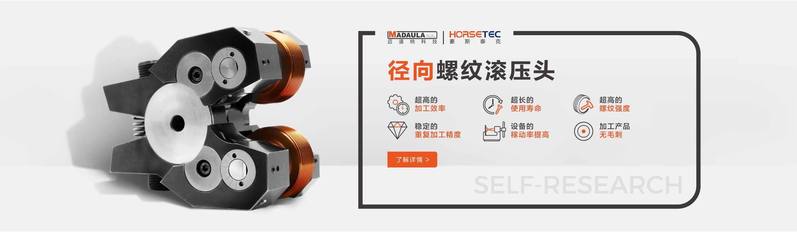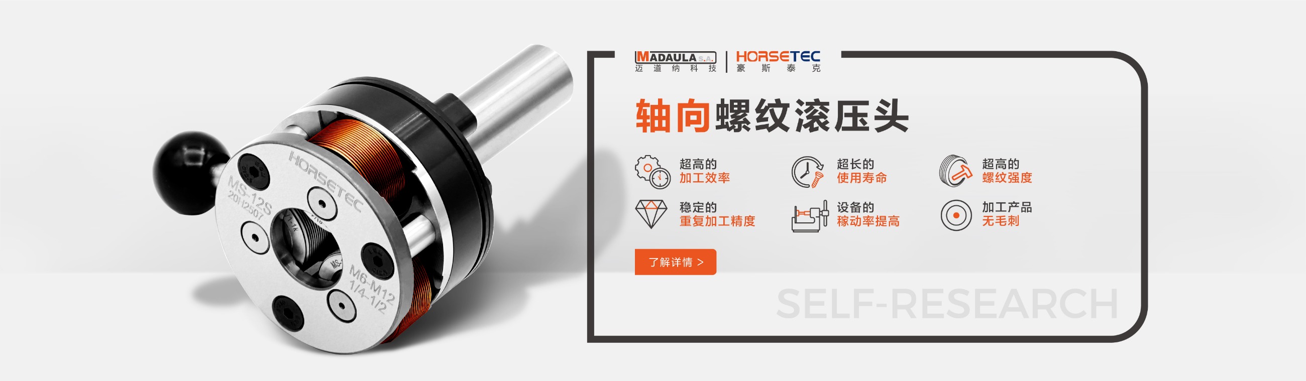 很多做機(jī)械的對螺紋滾壓頭都不陌生,它的功能和優(yōu)勢也是有口皆碑的,所以現(xiàn)在有越來越多的人愿意選擇HORSETEC螺紋滾壓工具來滾壓螺紋,而我們常見到的螺紋滾壓工具是采用鋼材料制作而成的一種滾螺紋加工工具,成功沿襲傳統(tǒng)的螺紋滾壓頭的所有優(yōu)勢,比如高效率、高精度、高強(qiáng)度,除此之外,螺紋滾壓頭可以定制您的專屬logo,不僅有效提升了產(chǎn)品的檔次,給使用者帶來不錯(cuò)利益。今天要給大家說一說高質(zhì)量的螺紋滾2022-09-13